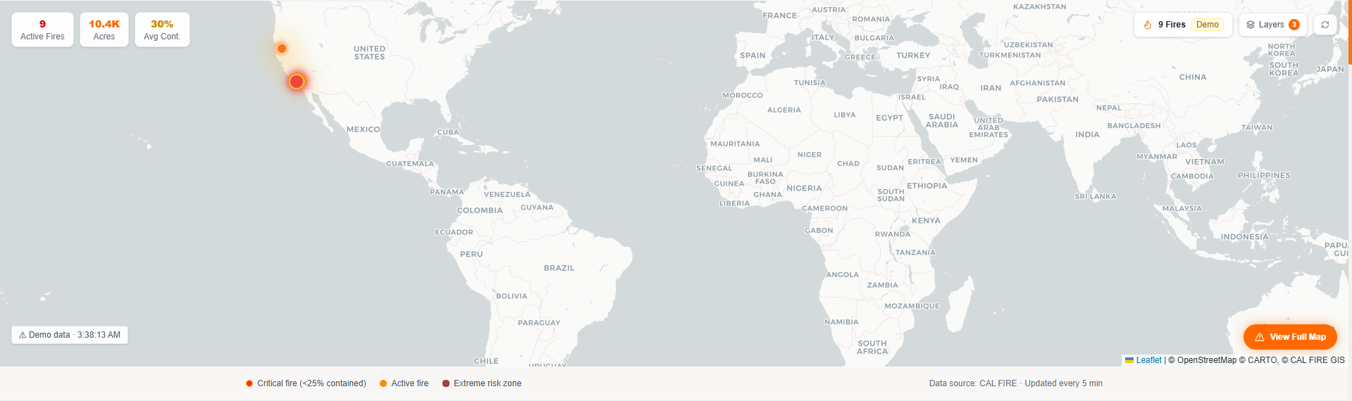 Real-time active fire map powered by CAL FIRE data